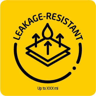 Leakage-Resistant fabric absorbs the stated amount of liquid which then retains in the material without leakage.