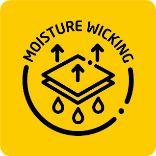 Moisture Wicking fabric promotes moisture diusion, enabling it to dry more quickly when wetted to provide comfort to the wearer.