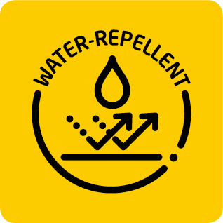 Water-Resistant fabric resists water penetration and can provide comfort to the wearer in rain and snow.