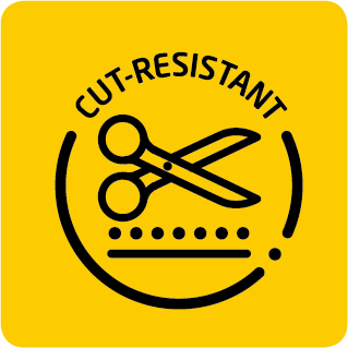 Cut-Resistant fabric protects against cut injury when using knife or scissors.