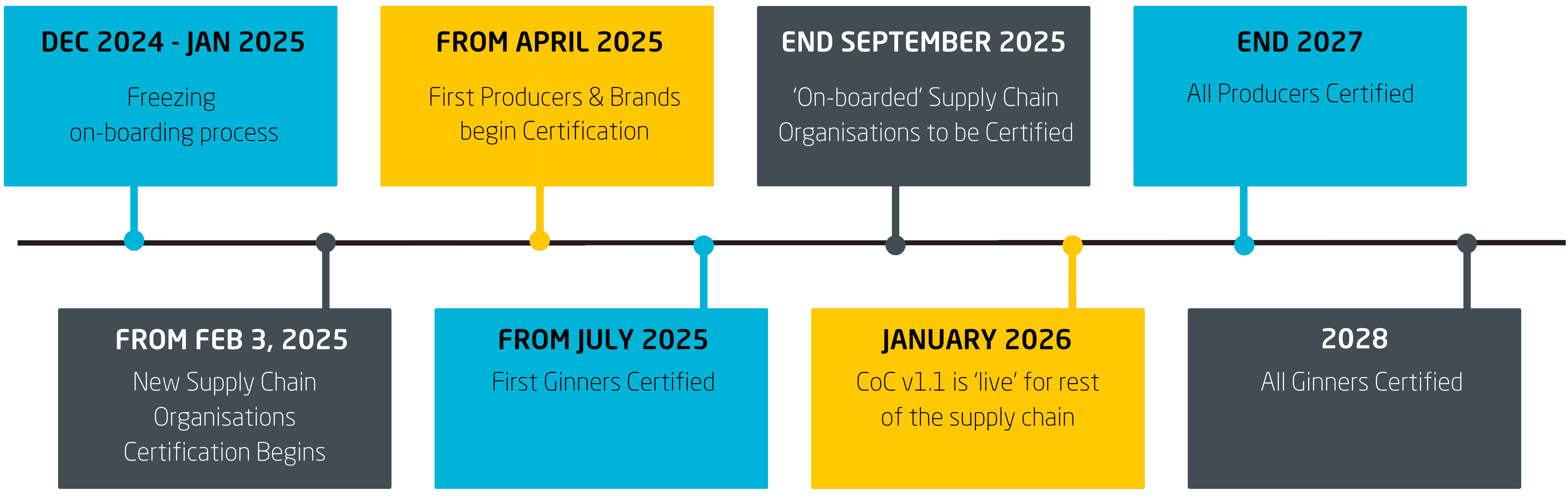 Desde el 1 de octubre de 2023, está en vigor la nueva Norma Better Cotton CoC, que permite el seguimiento físico de Better Cotton a lo largo de las cadenas de suministro globales. Esta norma actualizada introduce modelos físicos, como la segregación y la mezcla controlada, junto con el actual sistema de balance de masa de BC.